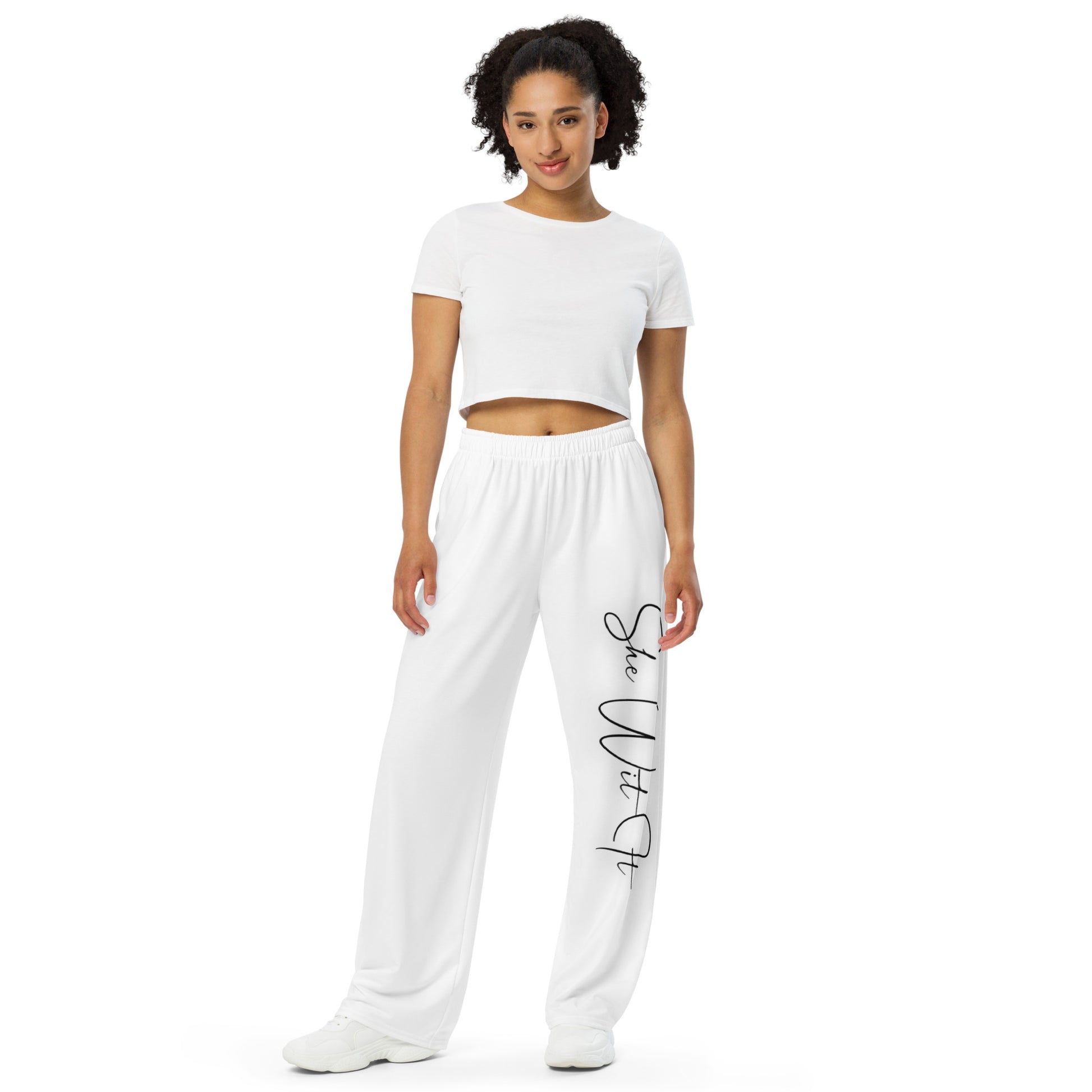 Get the comfort of pajamas in this stylish pair of wide-leg pants. With the adjustable waist and stretchy fabric, it’s like your favorite sweatpants but better.