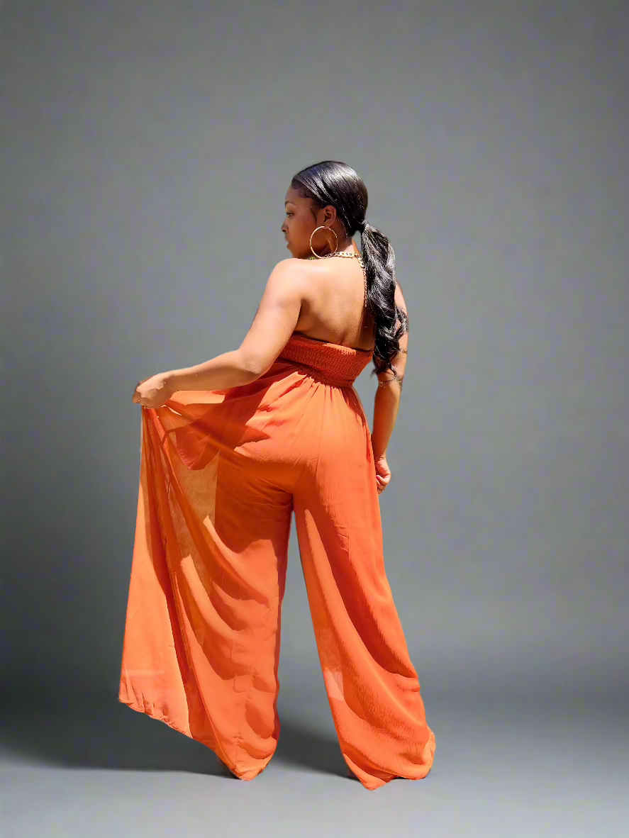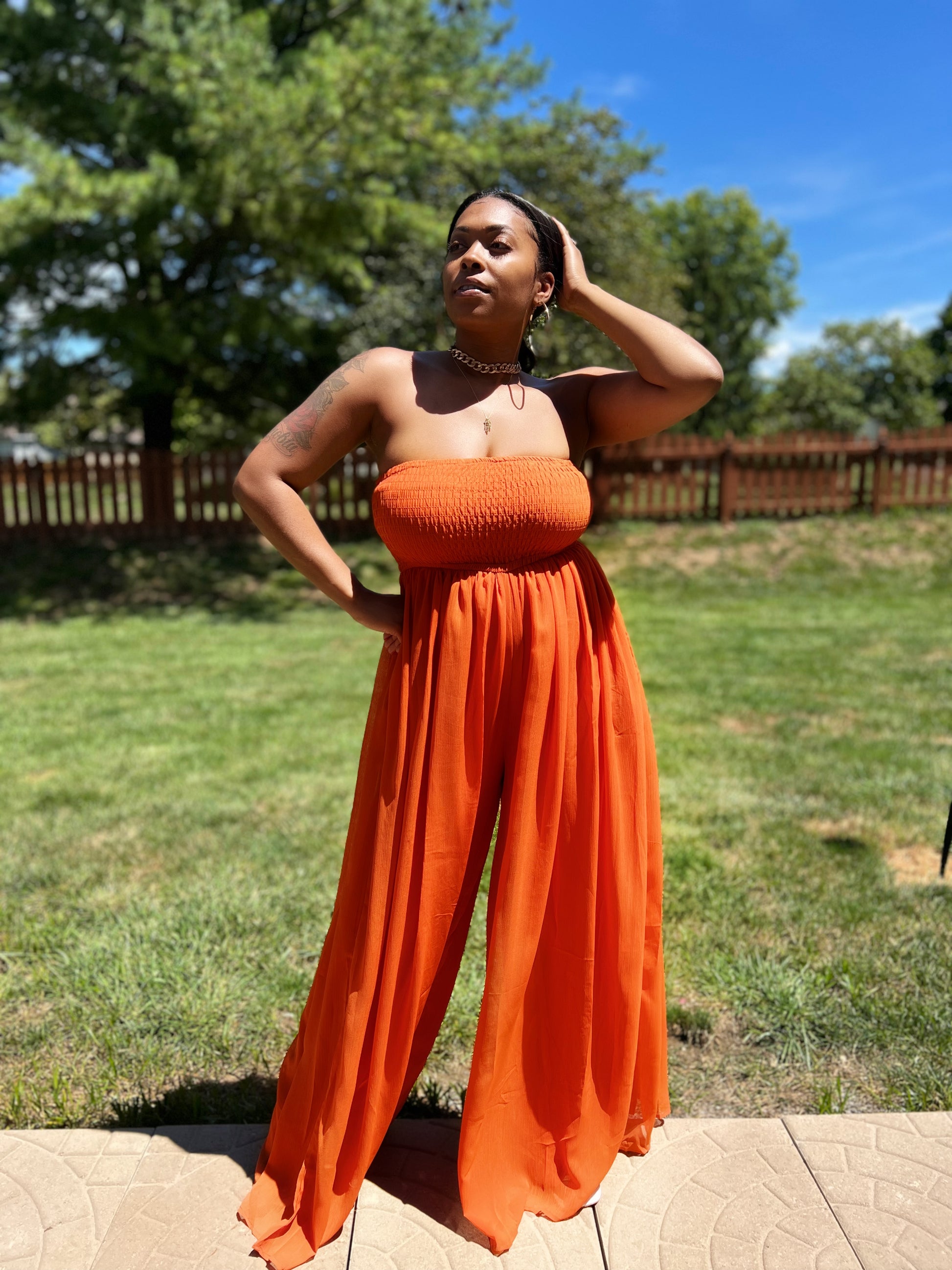 Flirty and flowy, you're going to fall in love with this jumpsuit. Wear it with sandals or heels for a fresh take on summer style this season. It is the perfect vacation piece. Featuring wide legged pants and smocked top makes this jumpsuit a chic and effortless way to look fabulous all day long. Also has pockets! (Jumpsuit is long)